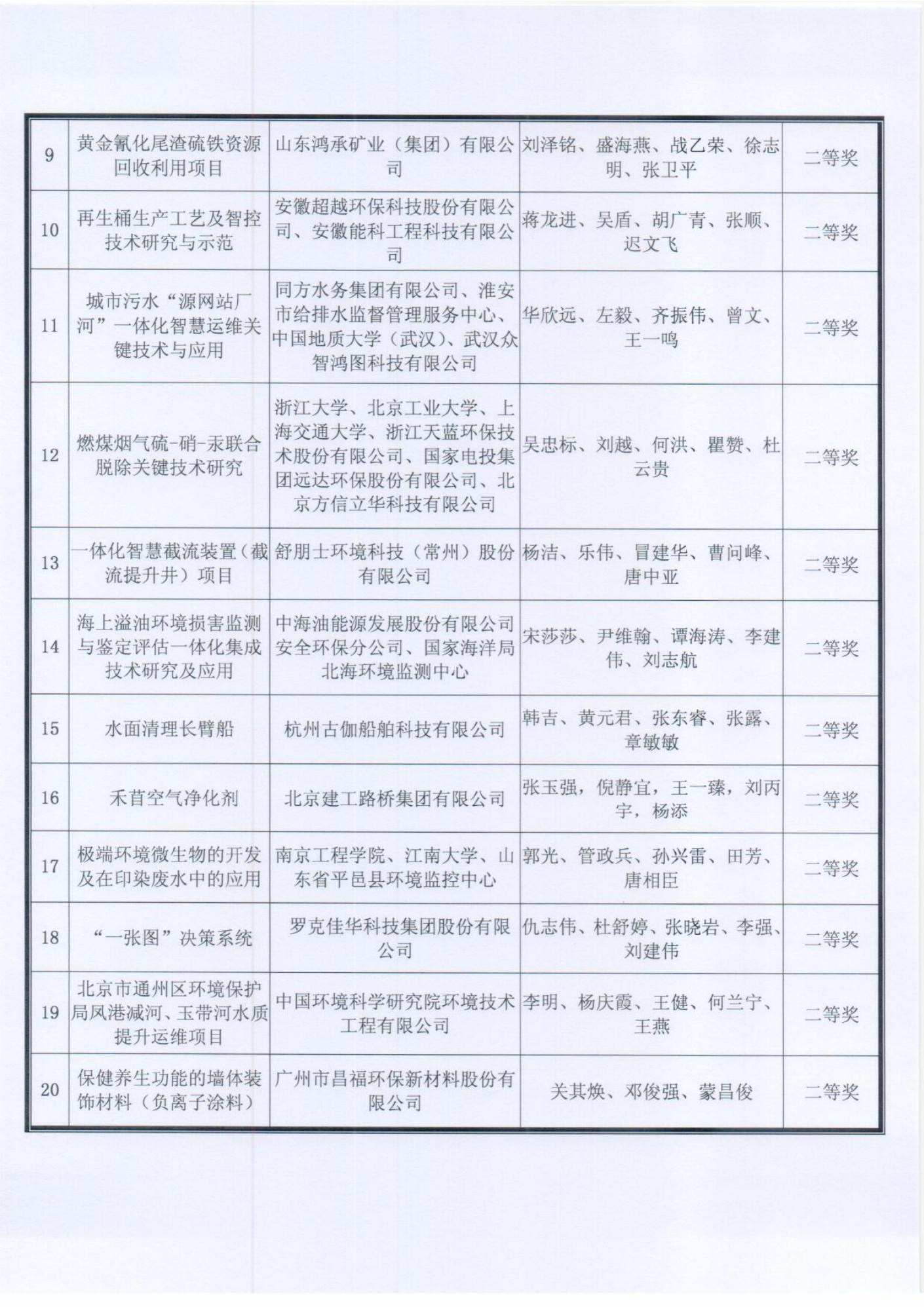 关于公布2020年度中华环保联合会