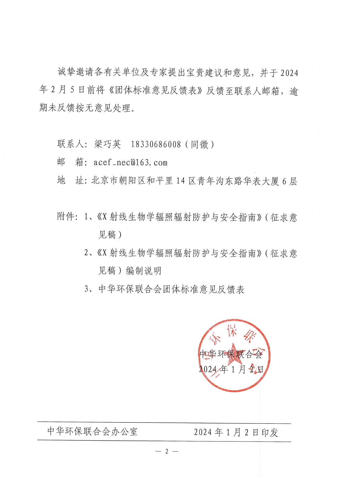 关于《X射线生物学辐照辐射防护与安全指南》团体标准征求意见的函