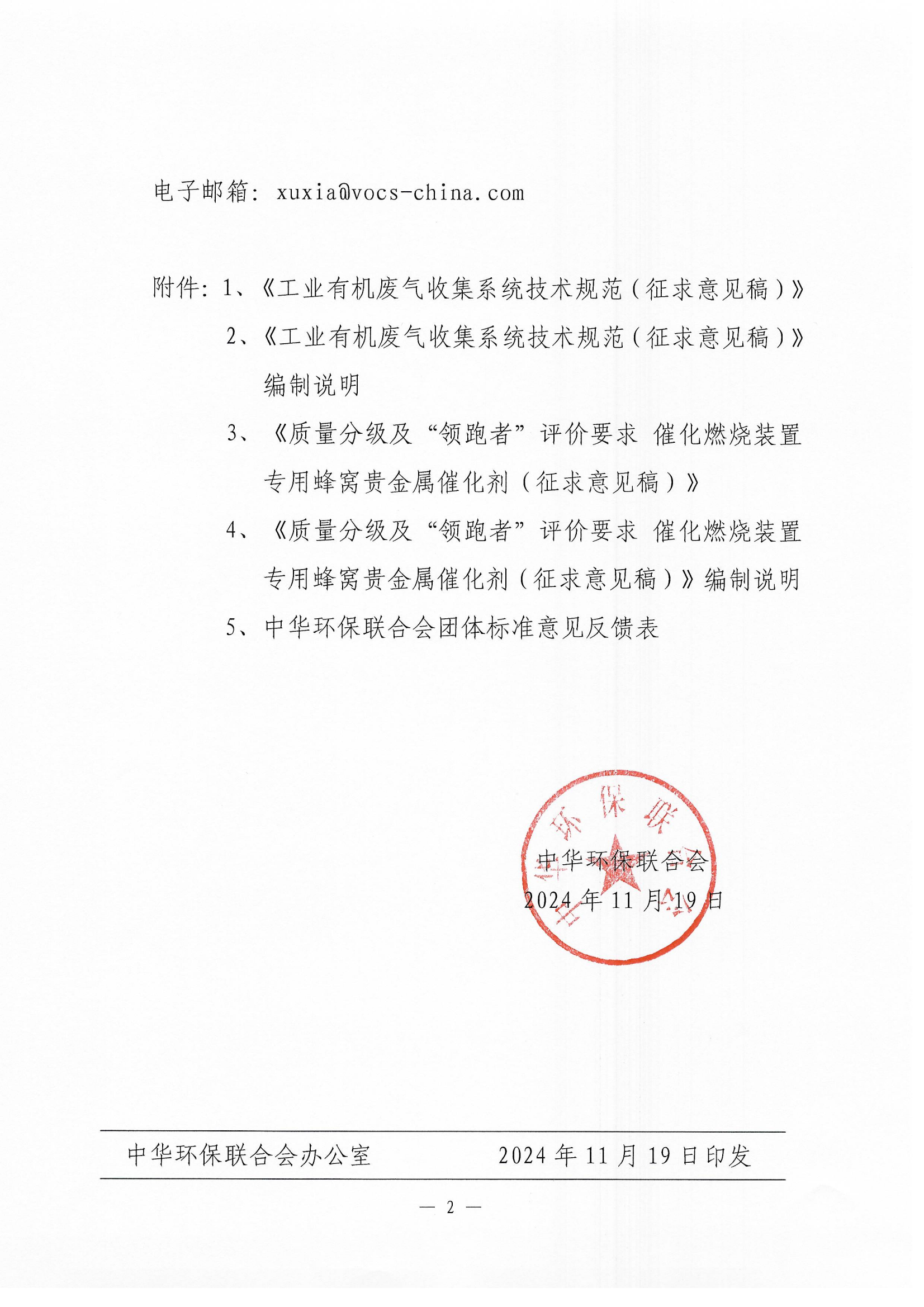 关于《工业有机废气收集系统技术规范》等两项团体标准征求意见的函 |