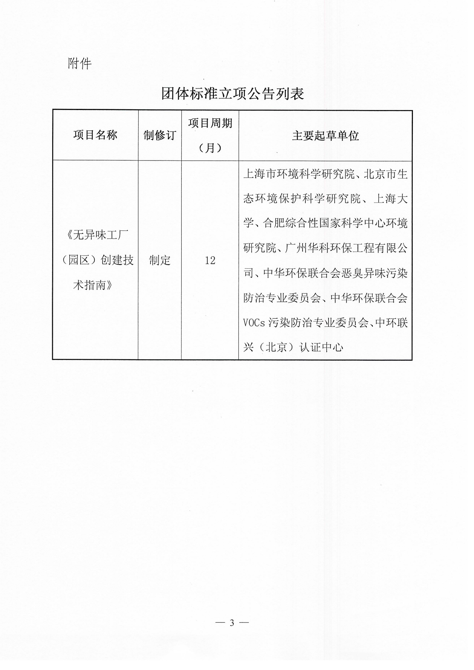 关于《无异味工厂(园区)创建技术指南》团体标准立项的公告