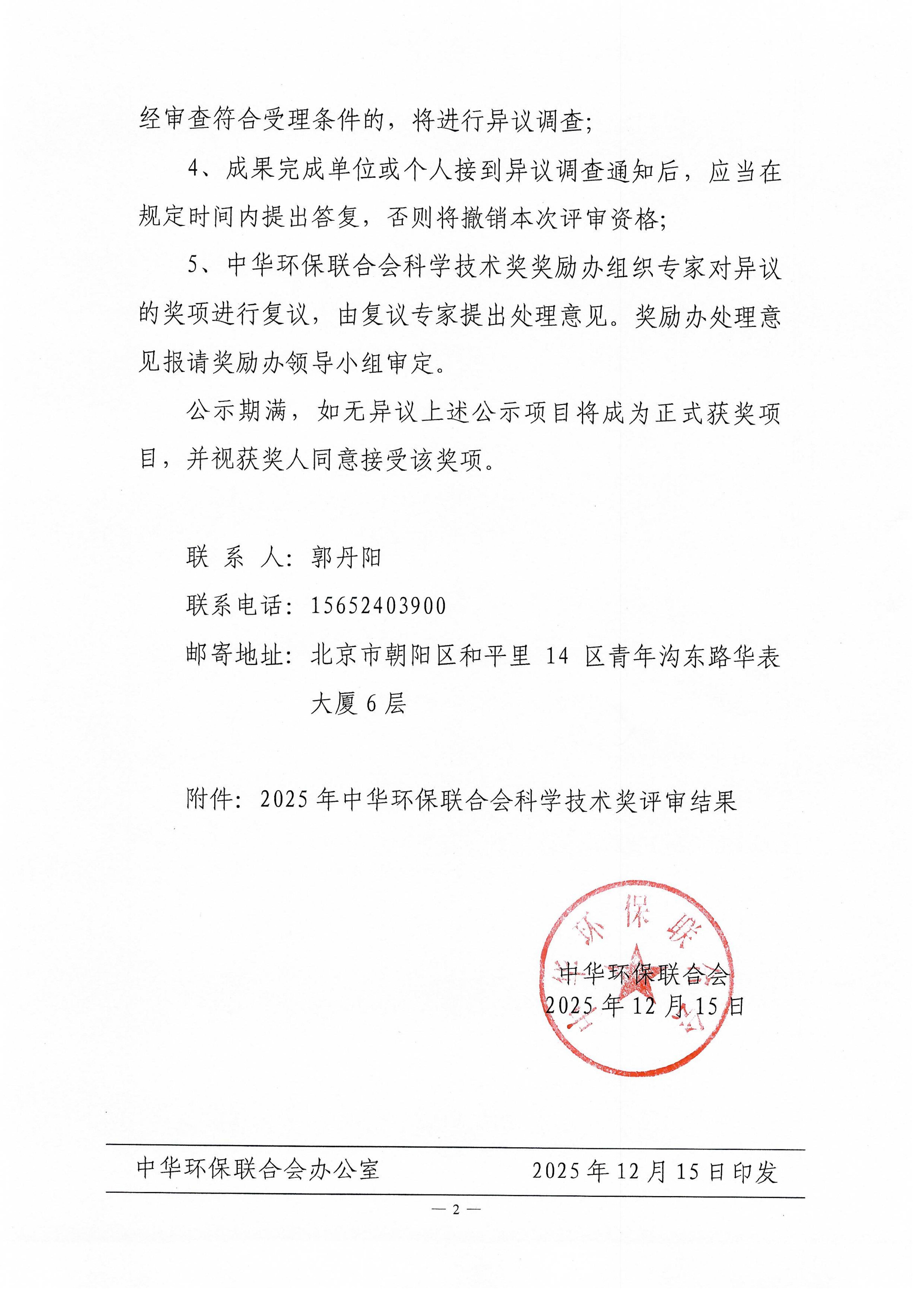 关于开展 2025年度中华环保联合会