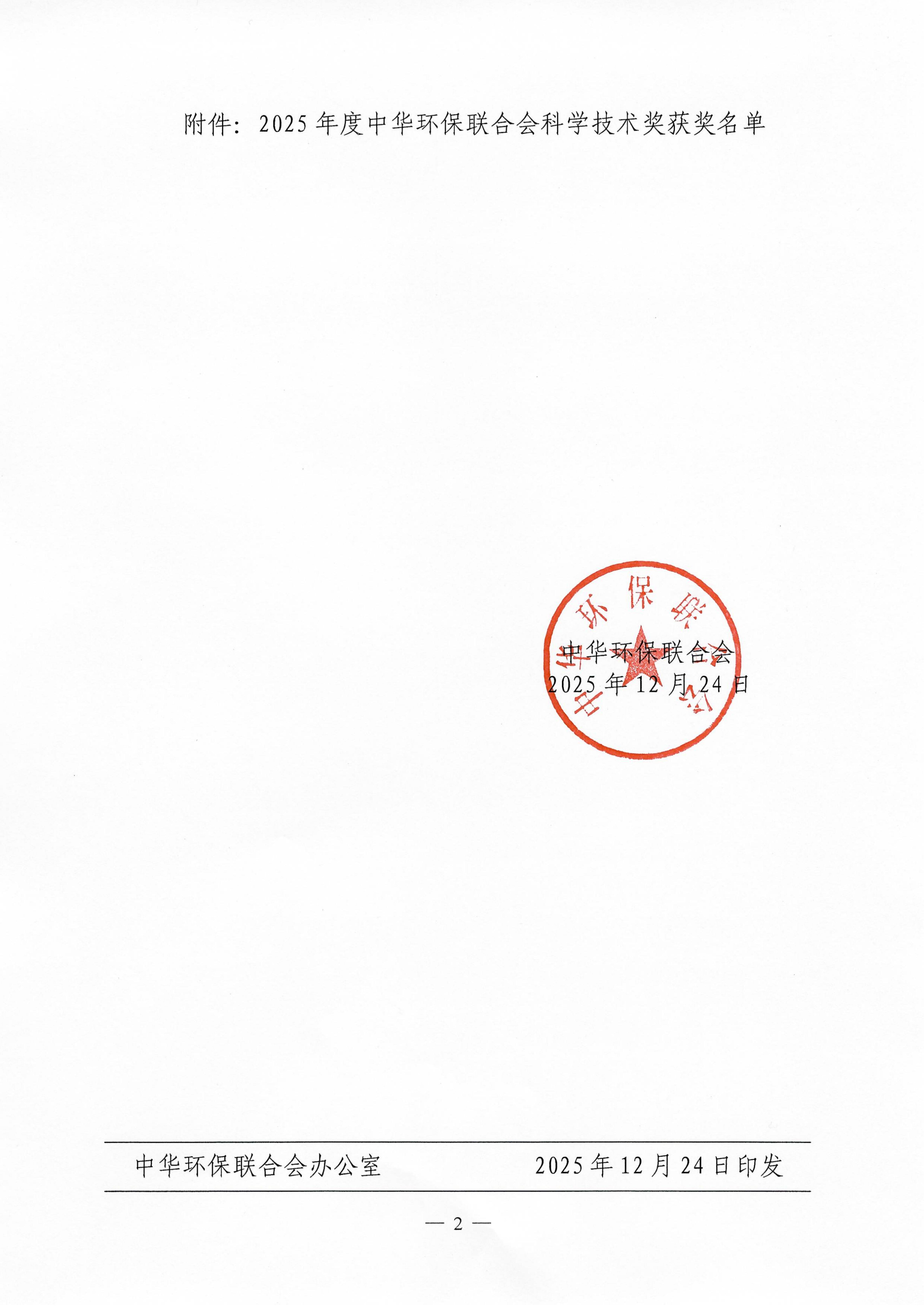 关于公布2025年度中华环保联合会科学