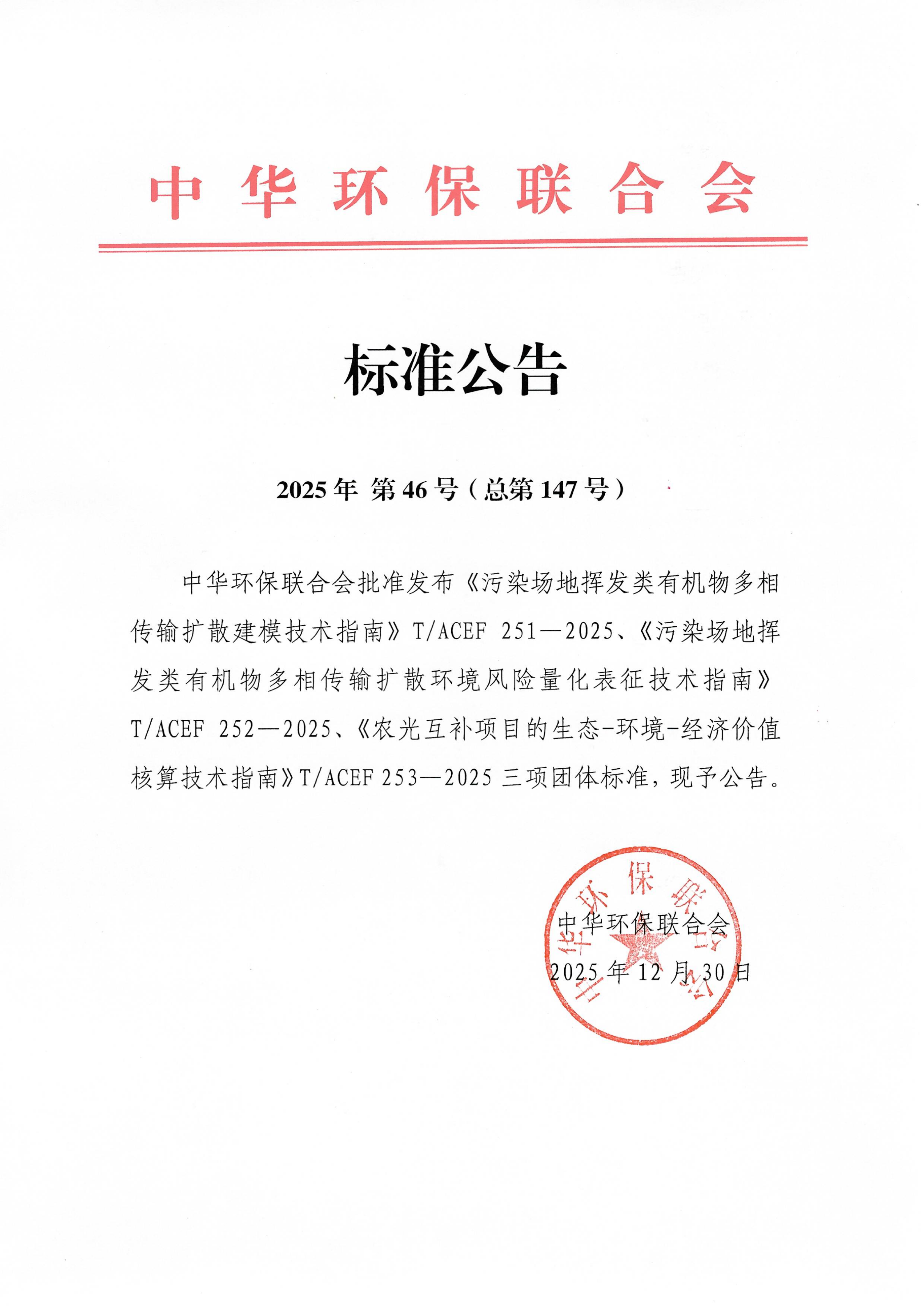 中华环保联合会批准发布《污染场地挥发类有机物多相传输扩散建模技术指南》等三项标准的公告