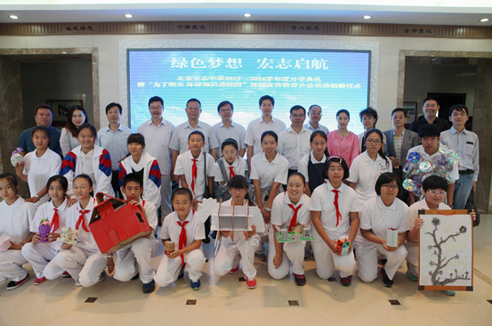 9月7日清晨,中华环保联合会、北京市环境保护宣传中心在北京宏志中学操场举行“绿色梦想,宏志启航——‘为了明天,环保知识进校园’环保宣传教育公益活动捐赠仪式”。中华环保联合会副秘书长吕克勤、北京市环境保护宣传中心主任凌越、东城区教委副主任孔庆亮、宏志中学校长熊劲等领导,以及新华社印务有限责任公司、北京同仁堂(集团)有限责任公司的代表、北京宏志中学全校师生出席活动。