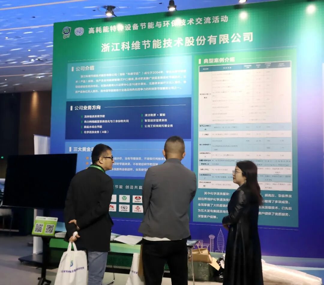 浙江科维节能以《科技节能,创造共赢》为题在主题汇报环节,就锅炉类高耗能特种设备的专业清洗业务及配套节能优化方案进行了分享。针对工业锅炉长期运行中普遍存在的结垢积灰、热效率下降、能耗升高、运维成本增加、设备使用寿命缩短等行业共性痛点,公司分享了标准化、安全化、高效化的锅炉清洗作业与成熟技术实践,相关实践内容与落地成果获得了与会人员的广泛关注与认可。