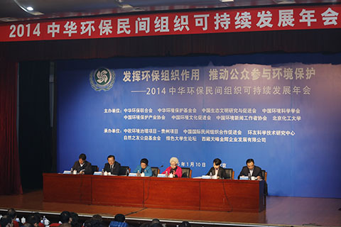 1月10-11日,以“发挥环保民间组织作用,推动公众参与环境保护”为主题的2014中华环保民间组织可持续发展年会(以下简称“年会”)在京举办。十届全国人大常委会副委员长、中华环联合会名誉主席顾秀莲,环保部办公厅副主任方志鸣,中国民间组织国际交流促进会副秘书长史国辉,中华环保联合会常务理事田华,北京化工大学党委副书记兼副校长任新钢,中华环保联合会副秘书长谢玉红、甄国强、吕克勤等领导出席了此次年会。来自与环保NGO相关的政府部门领导、国内外环保NGO代表、NGO研究专家学者、支持环保的各界人士和环保志愿者及媒体代表等200余人参会。
