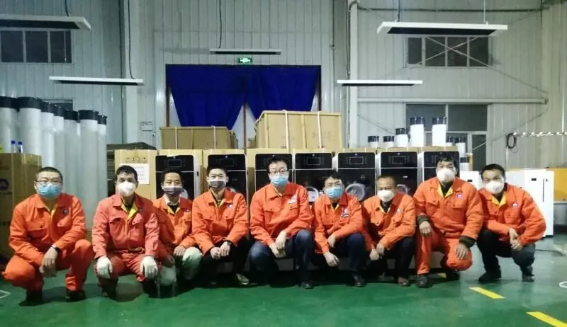 2月28日经过封闭生产住厂人员连日来加班加点联系捐赠物资运输车辆,测试、包装、装配健康水直饮水机设备,载满德蓝人满满心意的车辆有序从公司出发驶向各捐赠地。