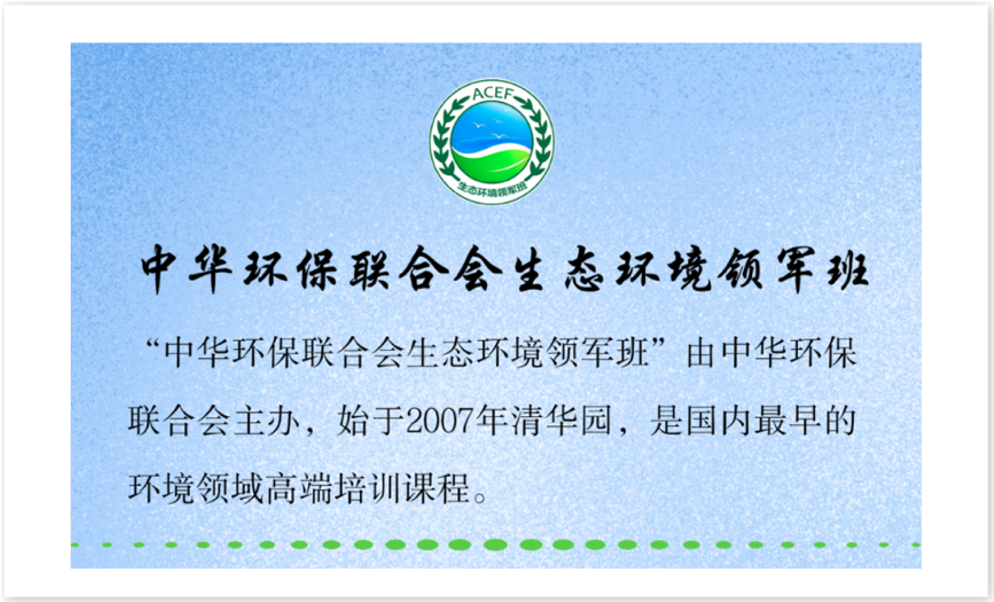 建设良好的生态文明是全人类共同的事业,未来生态环境与经济将不断协同发展,每个人都有义务和责任为之奋斗,中华环保联合会生态环境领军班正是将这样一群热爱环保的有识之士汇聚到了一起,在生态文明建设的道路上,他们不忘初心,砥砺前行!