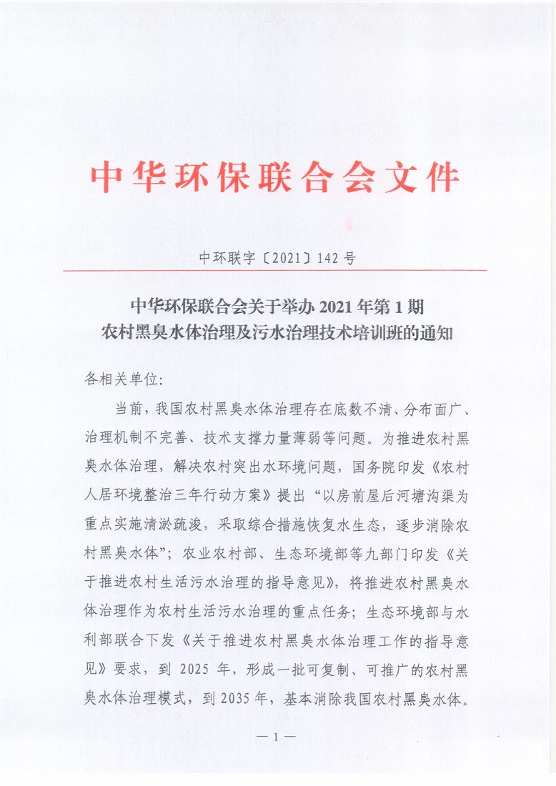 关于举办2021年第1期农村黑臭水体治理及污水治理技术培训班的通知