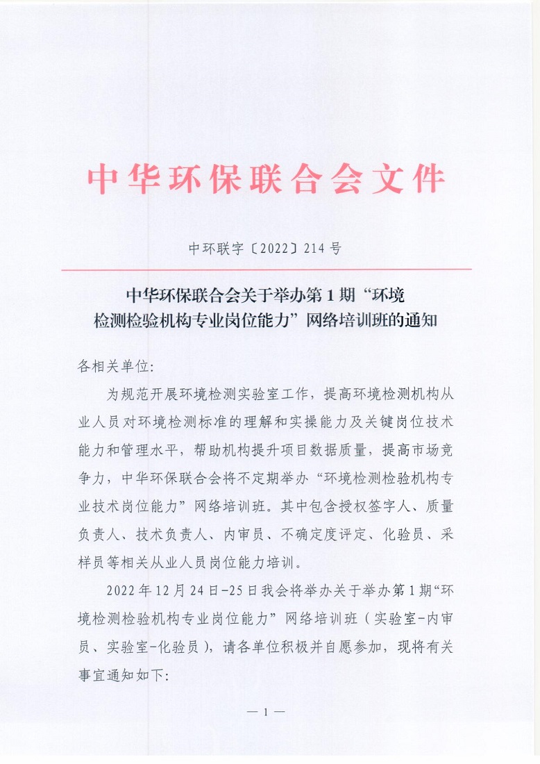 关于举办第1期“环境检测检验机构专业岗位能力”网络培训班