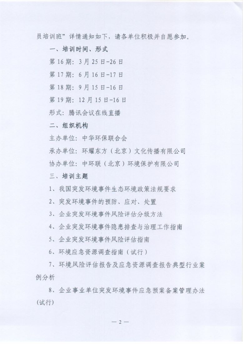 关于举办第16-19期环境应急预案编制与评审、环境风险评估从业人员培训班的通知