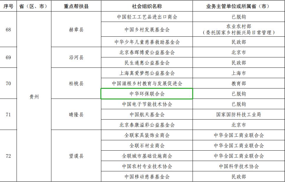 国家乡村振兴重点帮扶县结对帮扶名单出炉!中华环保联合会在列!