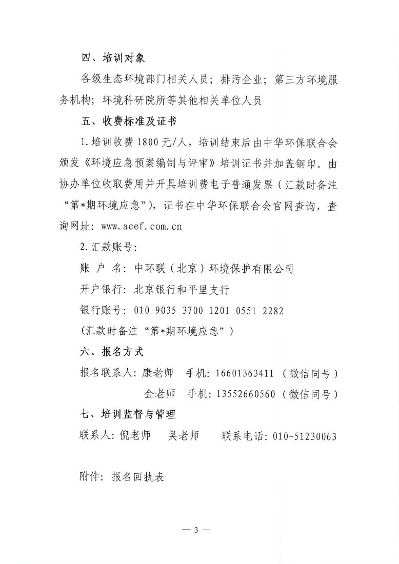 关于举办第20期“环境应急预案编制与 评审从业人员”培训班的通知