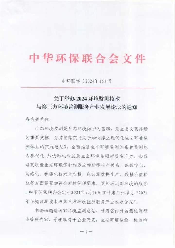 关于举办2024环境监测技术与第三方环境监测服务产业发展论坛的通知