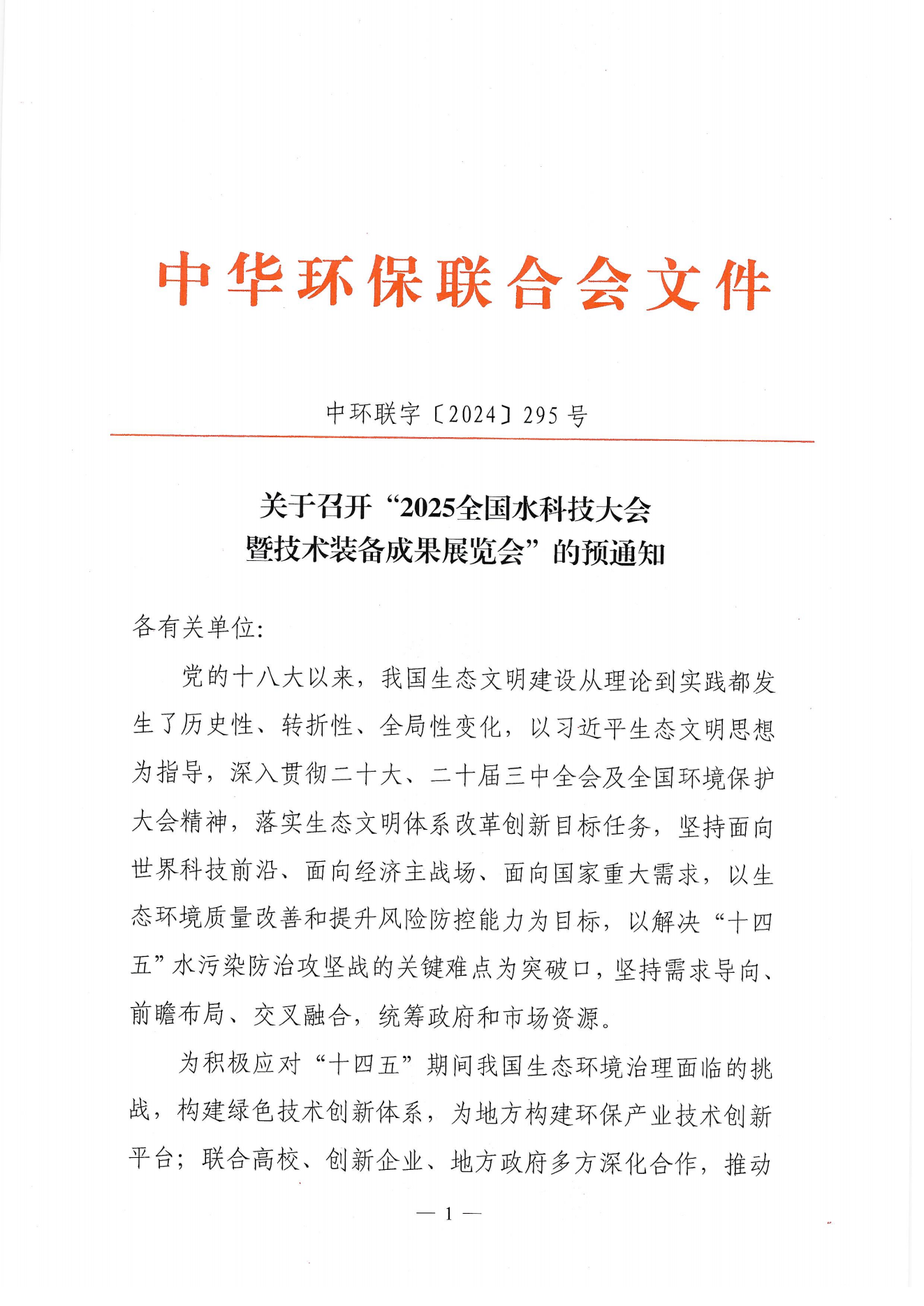 关于召开“2025全国水科技大会暨技术装备成果展览会”的预通知