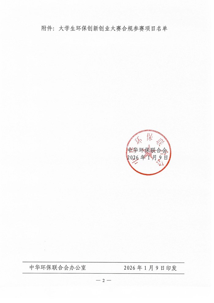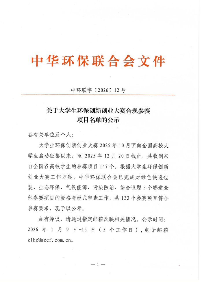 关于大学生环保创新创业大赛合规参赛项目名单的公示