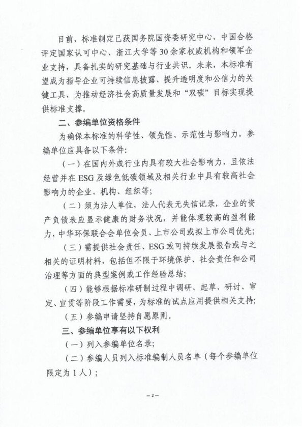 关于征集《可持续发展报告鉴证规范指南》行业标准参编单位的通知