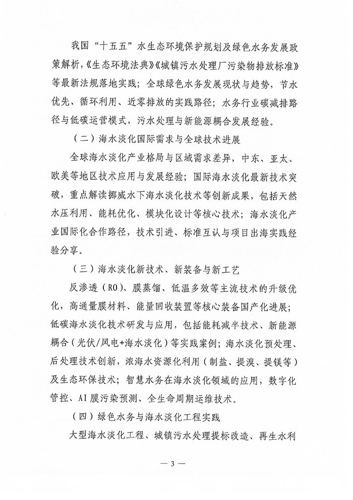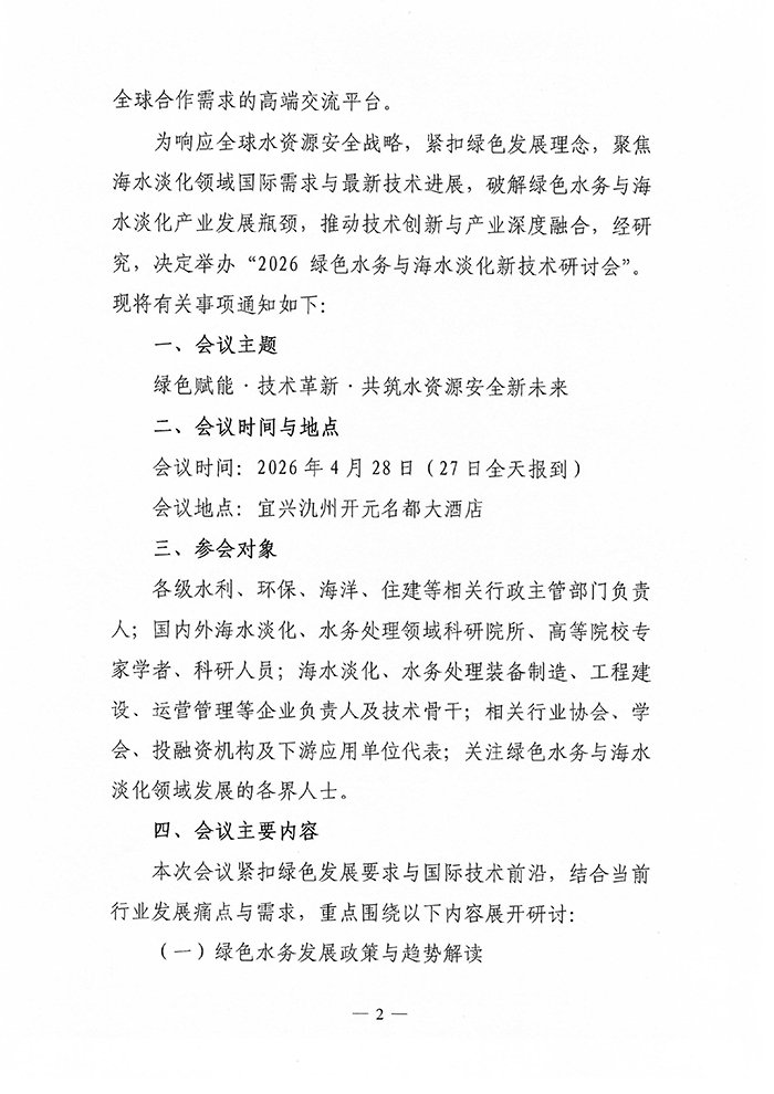 关于召开“2026绿色水务与海水淡化新技术研讨会”的通知