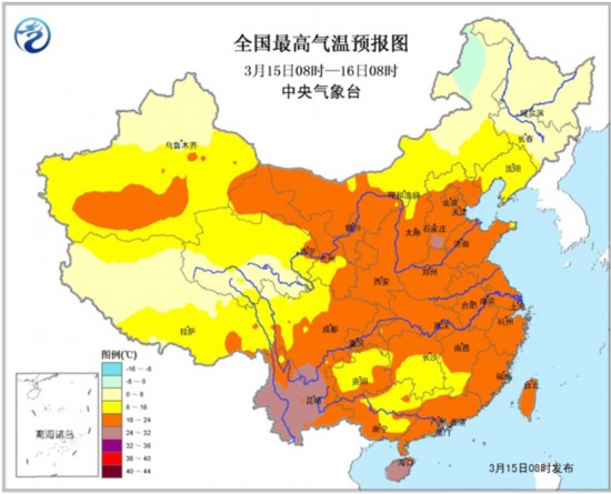 预计今天白天,我国大部地区气温继续回升。其中,北方大部地区将升温3~6℃,部分地区将超6℃,而南方大部地区的气温也将上升4℃左右;除东北地区外,中东部大部最高气温超过16℃,其中华北中南部、黄淮、江淮、江汉、江南北部及陕西、云南等地的最高气温均将超过20℃。并且上述地区的降水较弱,天气晴朗,颇有春天的味道,十分适宜大家外出赏春。