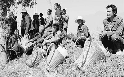 日前,昆明市东川区铜都街道块河村村民听说武装部要送水来,在路边等水。唐启荣摄(人民视觉)