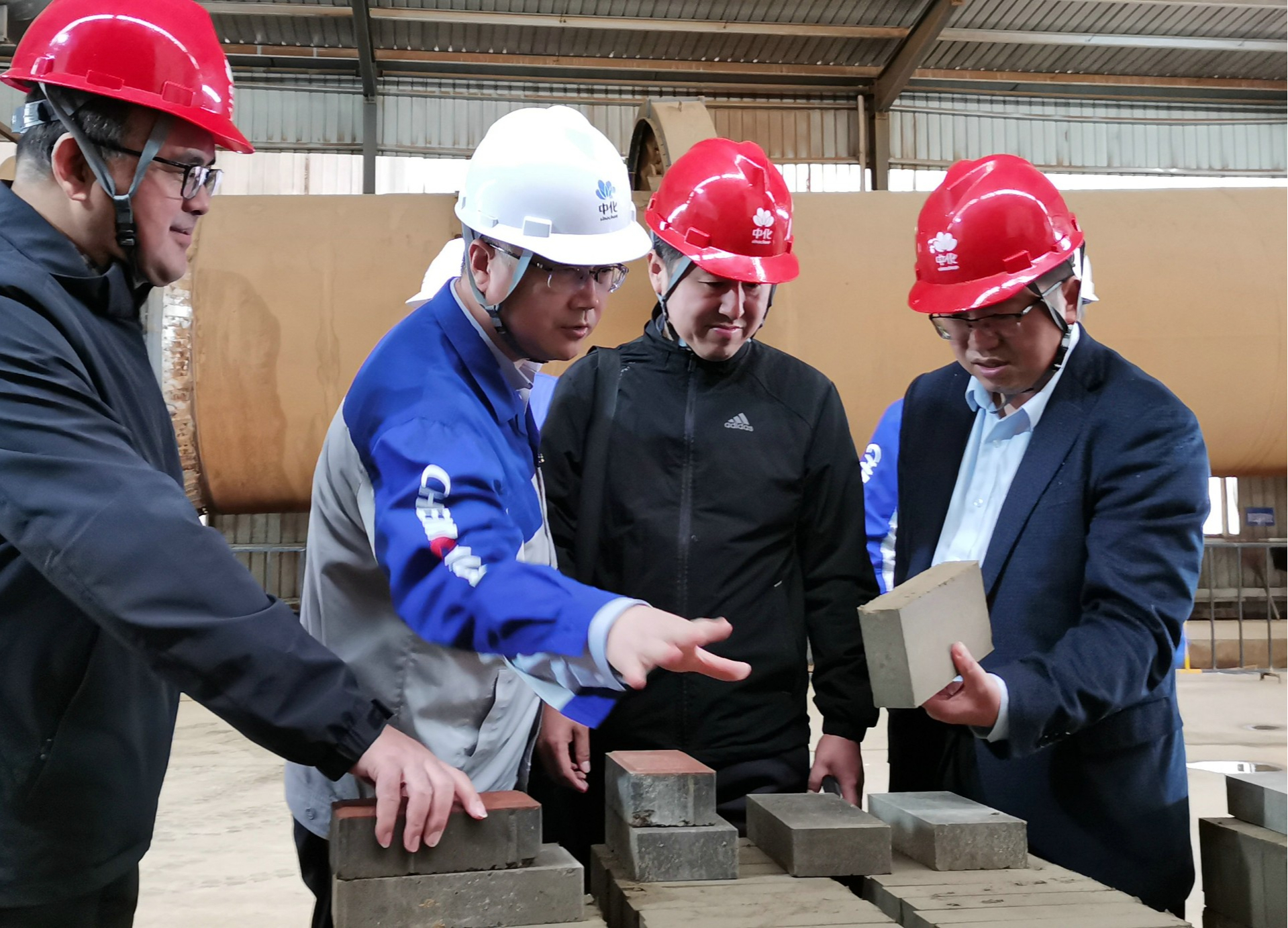 济南市生态环境部门工作人员现场了解裕兴化工钛石膏制砖项目进展。董若义摄