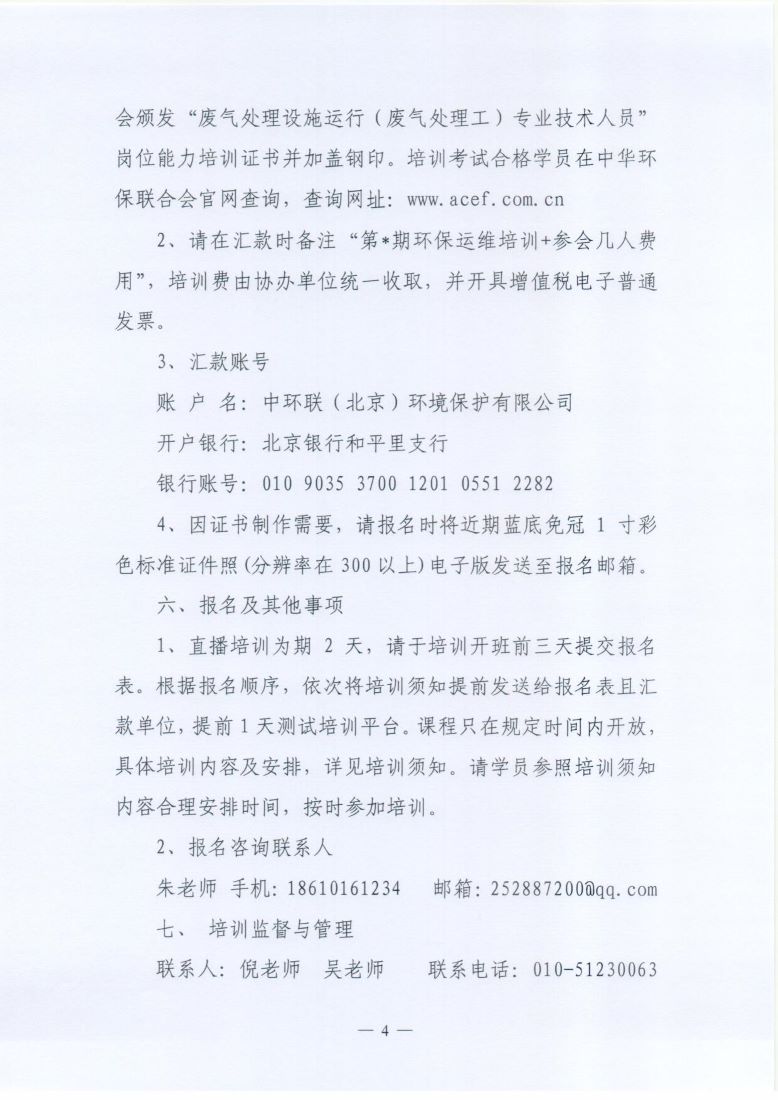 关于举办第5期“环保设施运营操作技术岗位能力”网络培训班的通知