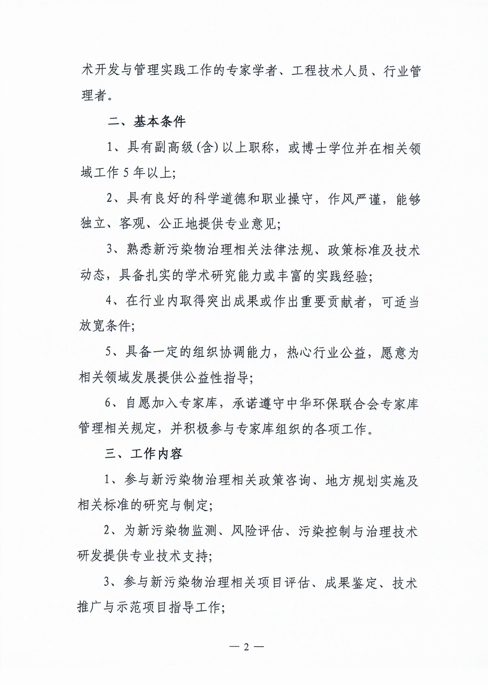 关于邀请加入中华环保联合会新污染物专家库的通知