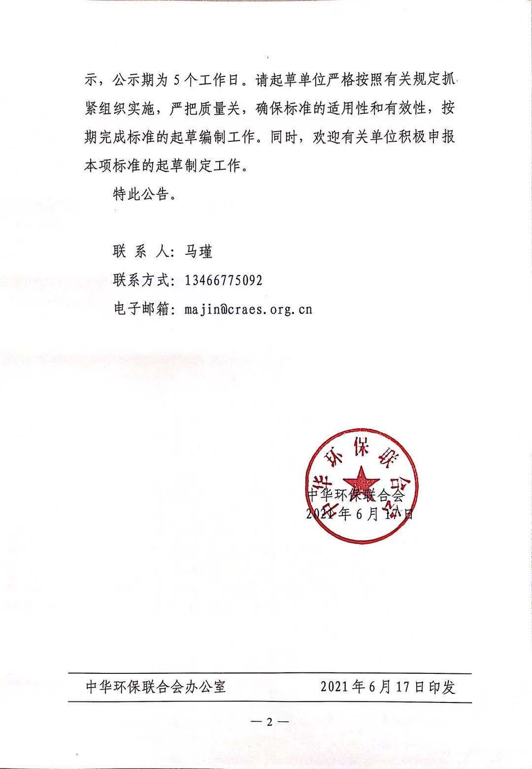 关于开展 2021年度中华环保联合会