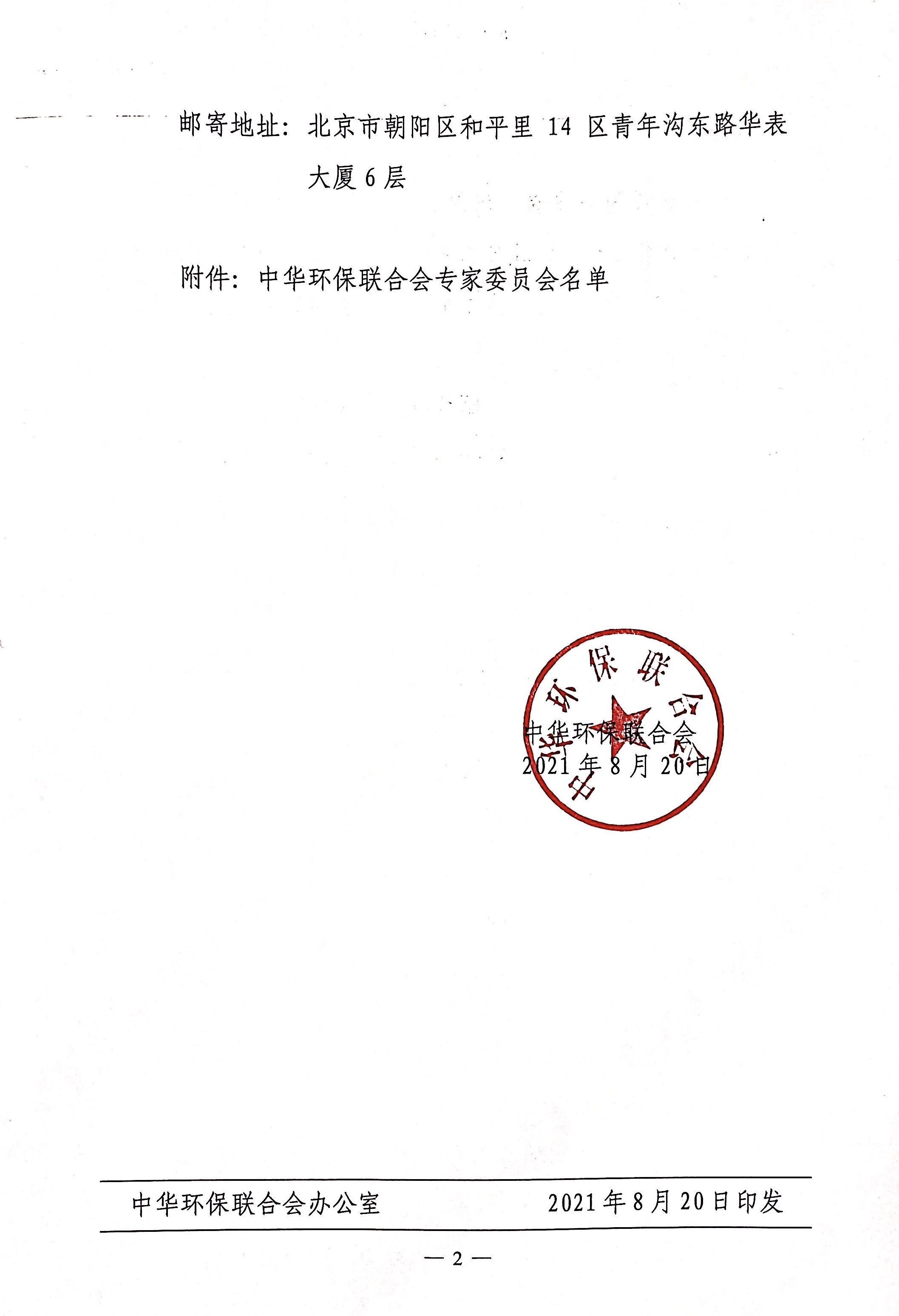 关于公示中华环保联合会专家委员会的通知