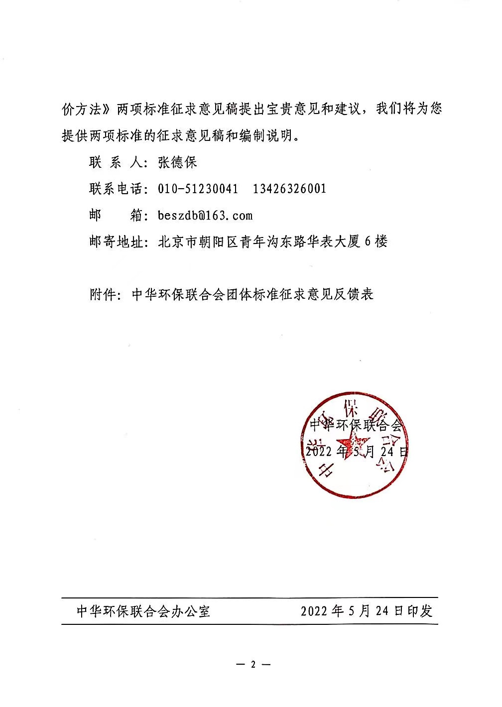 中华环保联合会关于《工业园区碳中和设计指南》和《工业园区碳中和评价方法》 两项团体标准征求意见的函