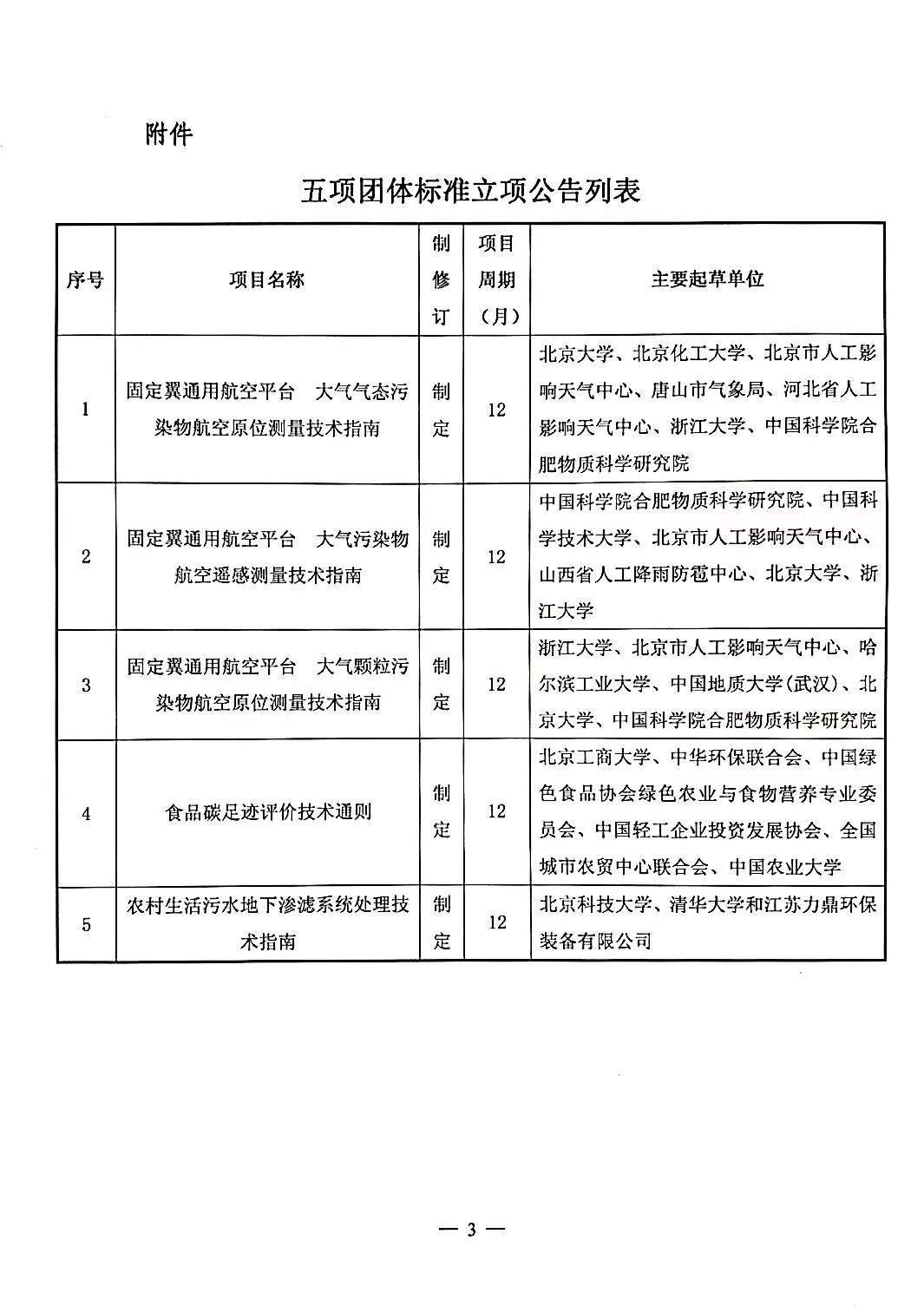 中华环保联合会关于《固定翼通用航空平台 大气气态污染物航空原位测量技术指南》《食品碳足迹评价技术通则》等五项团体标准立项的公告