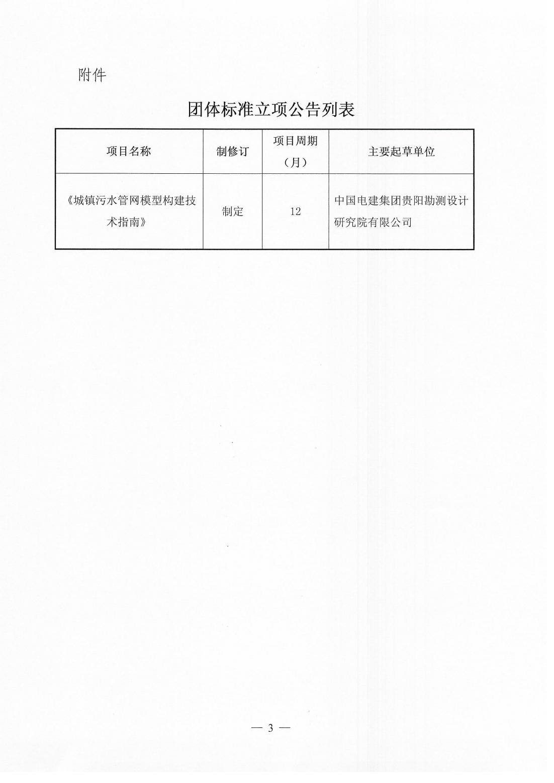 关于《城镇污水管网模型构建技术指南》团体标准立项的公告