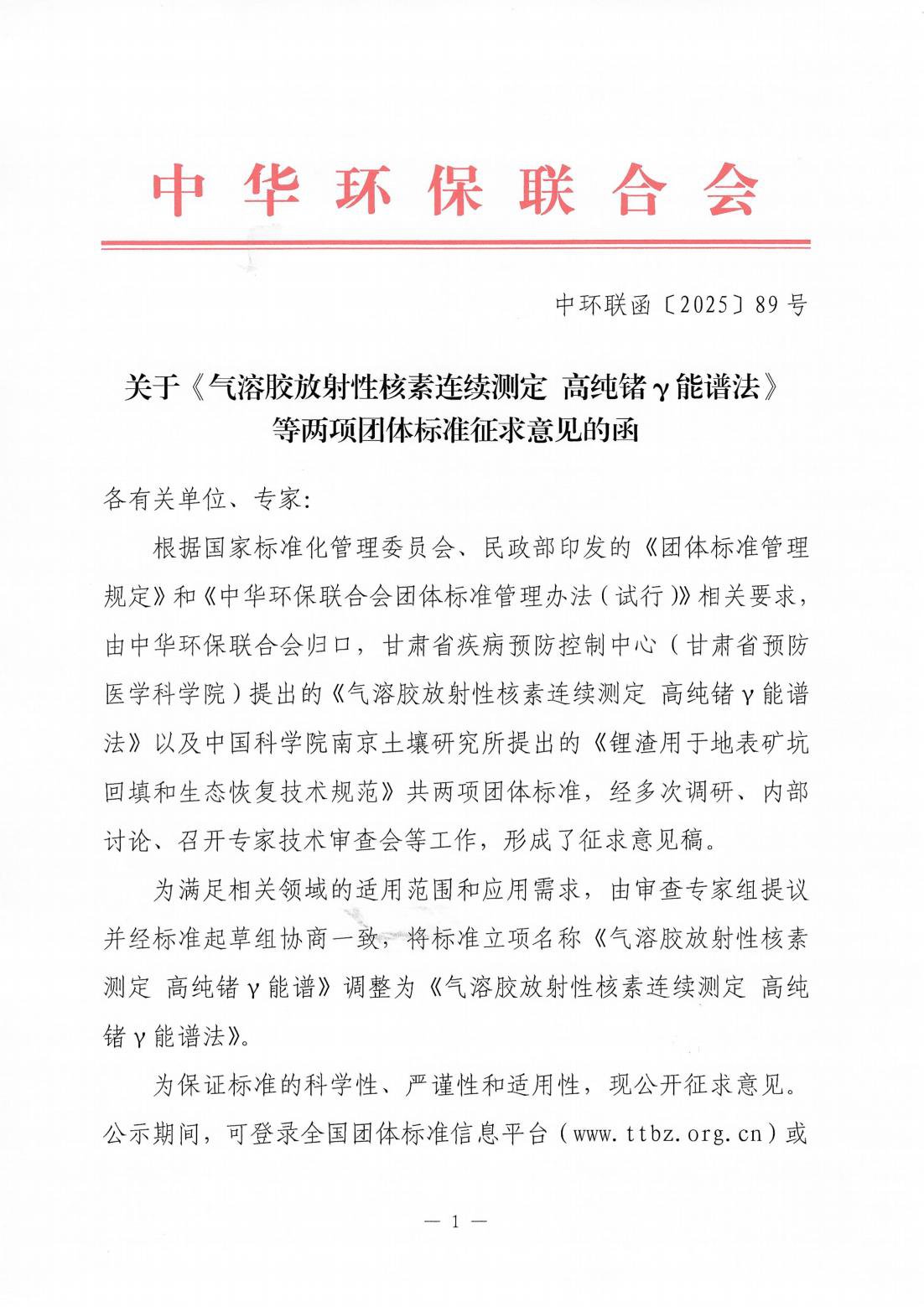 附件1.《气溶胶放射性核素连续测定 高纯锗γ能谱法》(征求意见稿) |