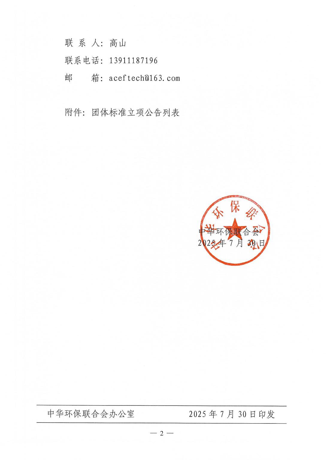 关于开展 2025年度中华环保联合会