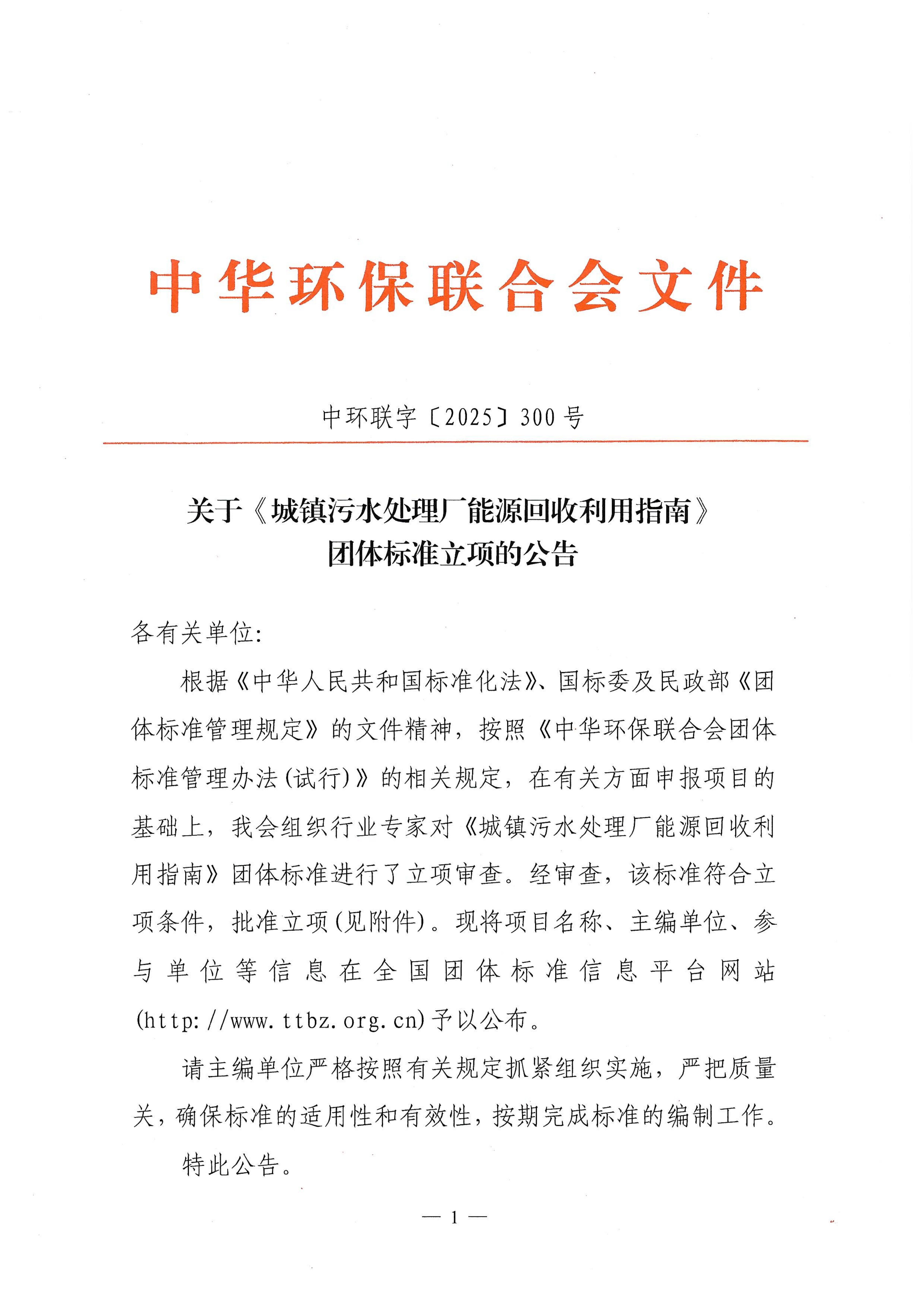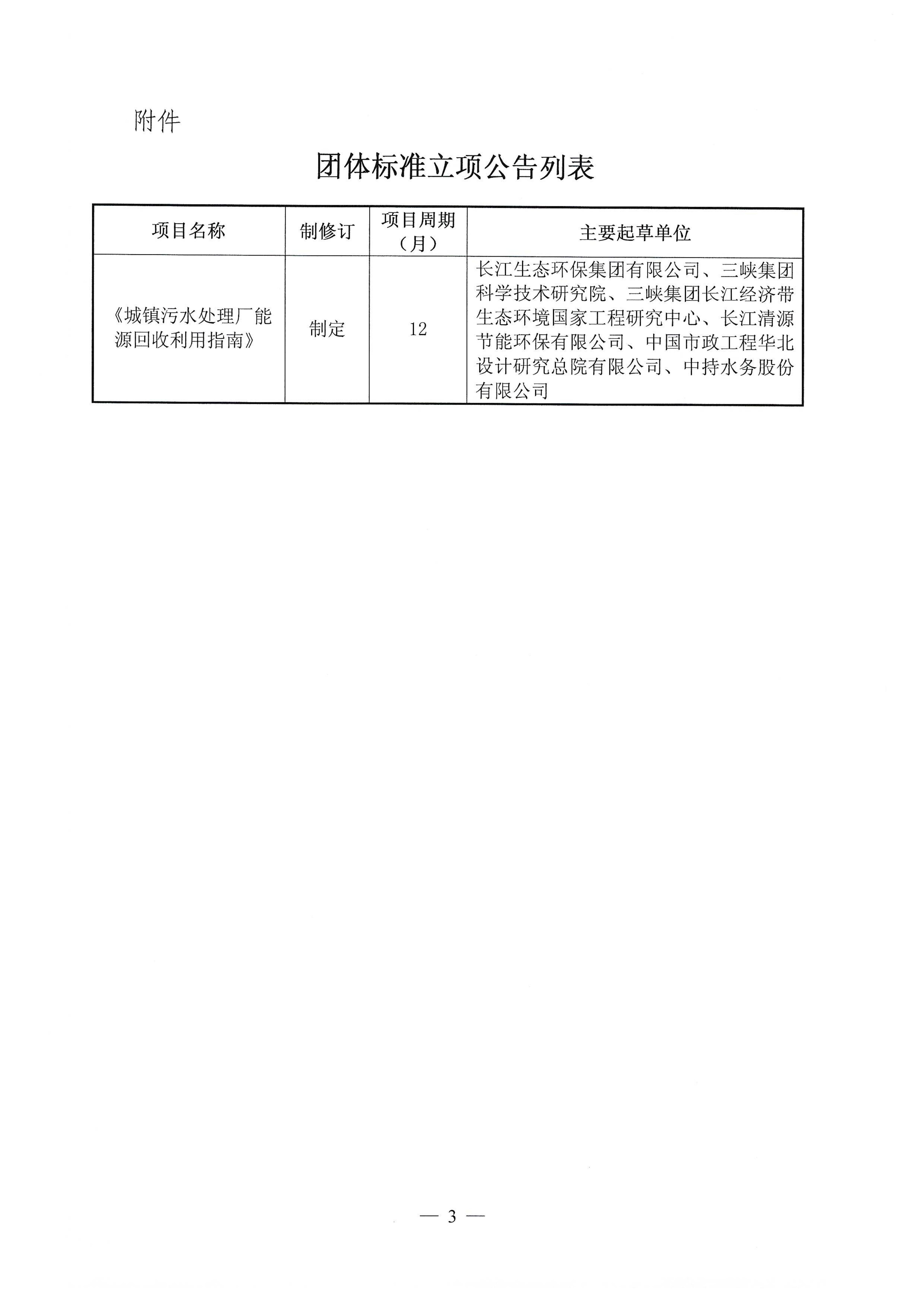 关于《城镇污水处理厂能源回收利用指南》团体标准立项的公告