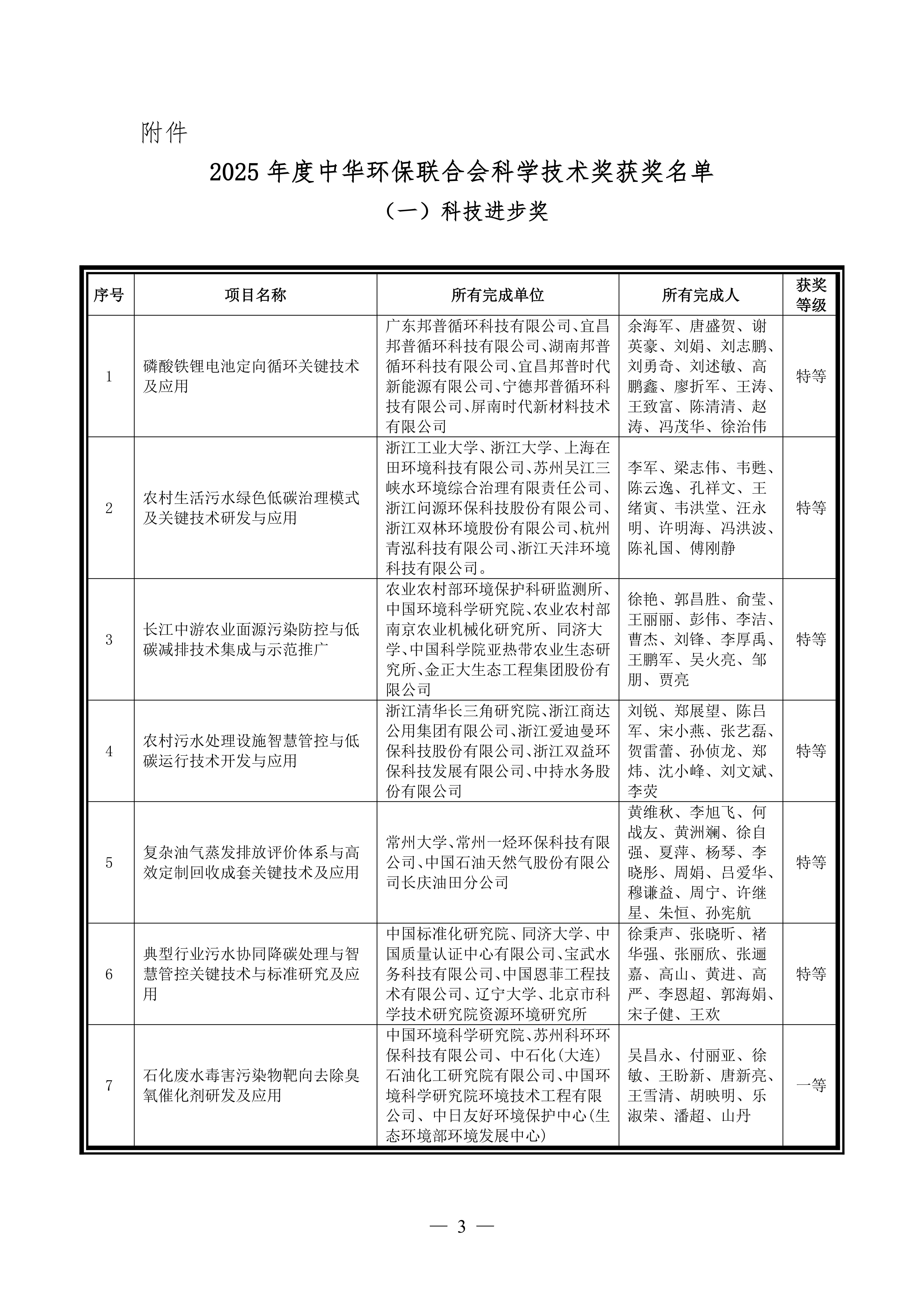 关于公布2025年度中华环保联合会科学技术奖获奖项目和个人的决定