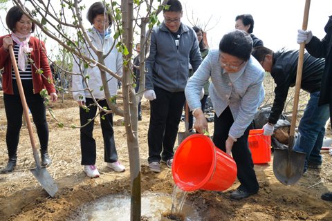当十届全国人大副委员长顾秀莲宣布“植树活动开始!”后,大家四人一组,刨土挖坑,短短的2个多小时,共种下200余棵海棠。本次活动得到了北京市延庆县委、县政府、中国环境友好企业联盟、中国低碳旅游基金、北京绿色未来环境基金会、北京市八达岭旅游总公司、世界葡萄博览园、Tree Planet、北京华油兴业能源技术有限公司的大力支持。