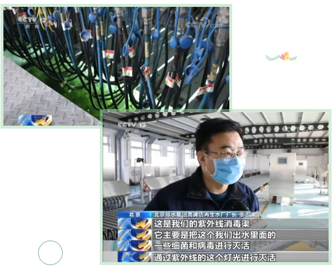 在位于北京朝阳区的高碑店再生水厂,记者看到用于杀灭水中各类细菌和病毒的10个紫外线消毒渠已经全部开启。