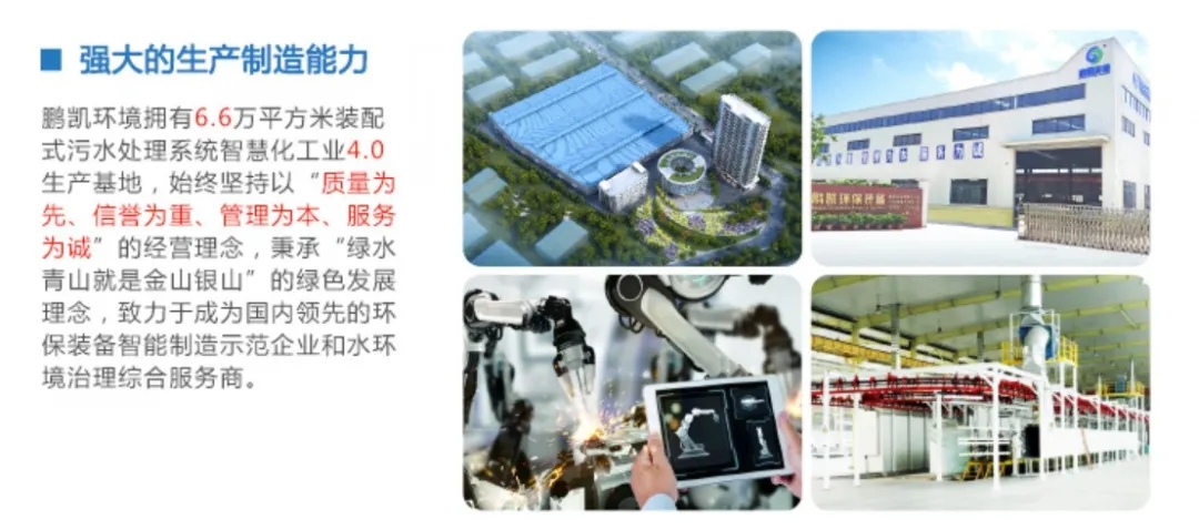 广州鹏凯环境科技股份有限公司是一家综合性环保设备制造及系统服务的集团公司,总部位于广州番禺天安节能科技园,拥有湖南、海南、贵州等多家分公司。专业从事水环境技术研究、水环境治理解决方案、水处理设备专业制造,是集研发、设计、制造、安装、运营、投资于一体,为人居生态环境提供一站式解决方案的综合性集团企业。