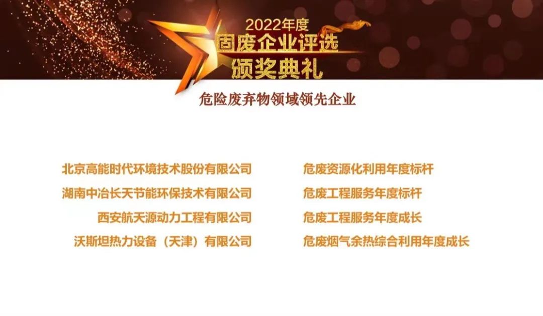 近日,“2022(第十六届)固废战略论坛”在深圳举行,会议颁布了2022年度固废企业评选名单,高能环境凭借雄厚的经营实力、领先的创新科技力及精诚品质与服务入围2022年度危险废弃物领域领先企业名单,荣获“危废资源化利用年度标杆”称号。高能环境副总裁、董事会秘书张炯受邀出席会议并代表公司领奖。