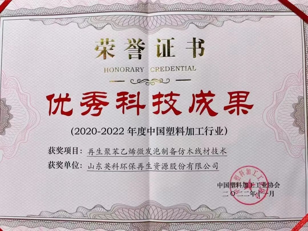 在行业交流大会中,英科再生荣获中国塑料加工工业协会颁发的三项奖项。