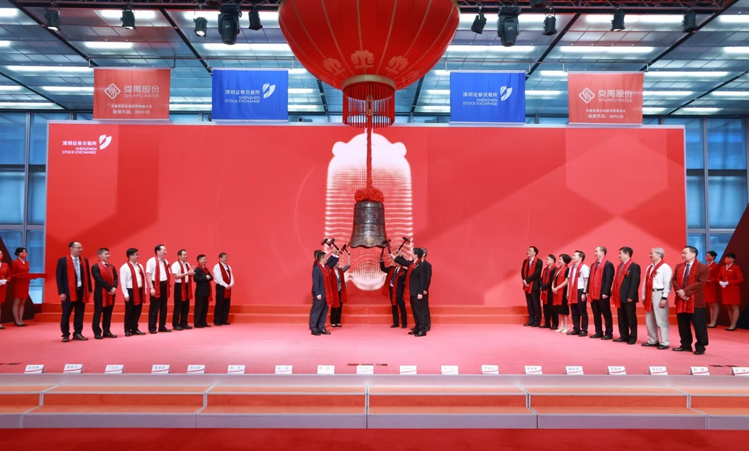 7月27日,安徽舜禹水务股份有限公司(股票简称:舜禹股份,股票代码:301519)成功登陆深圳证券交易所创业板。省人大常委会原副主任、安徽(皖)籍专家学者实业家联谊会会长李明、安徽省生态环境厅副厅长、一级巡视员罗宏,深圳证券交易所党委委员、副总经理李鸣钟,合肥市副市长赵明,长丰县委书记李命山以及来自省市县政府部门领导、行业专家学者、合作伙伴和员工代表共计300余人参加了当天的上市仪式。