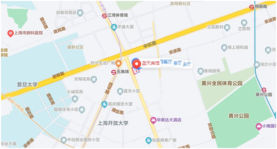 2、942路:步行至上海火车站(北广场)公交站,乘坐公交942路(殷行路中原路方向)到达五角场(邯郸路)站;步行560米到达上海蓝天宾馆。