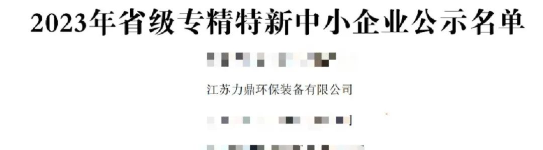 江苏力鼎环保装备有限公司成功获得江苏省专精特新中小企业认定。