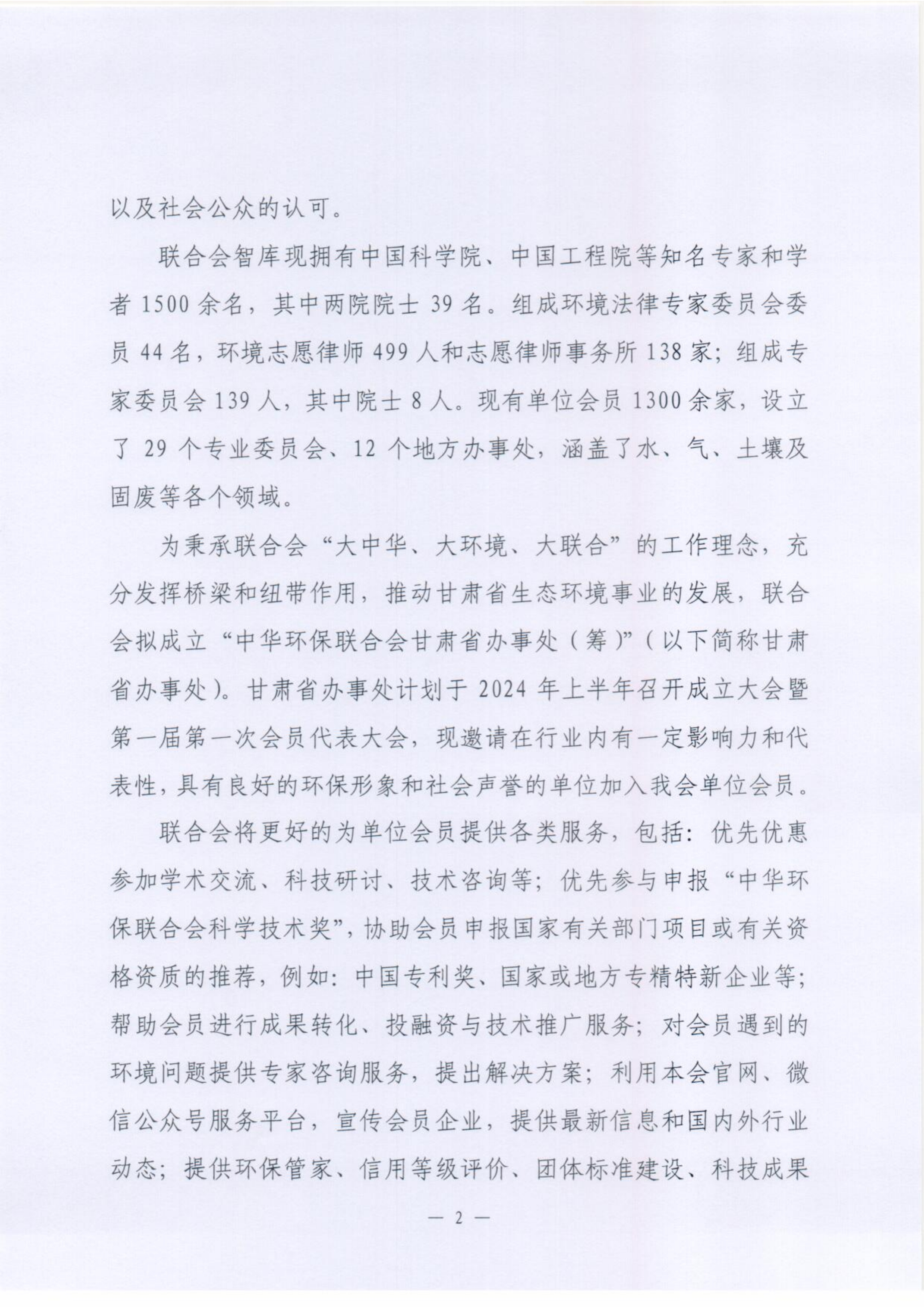 关于邀请加入中华环保联合会单位会员的函