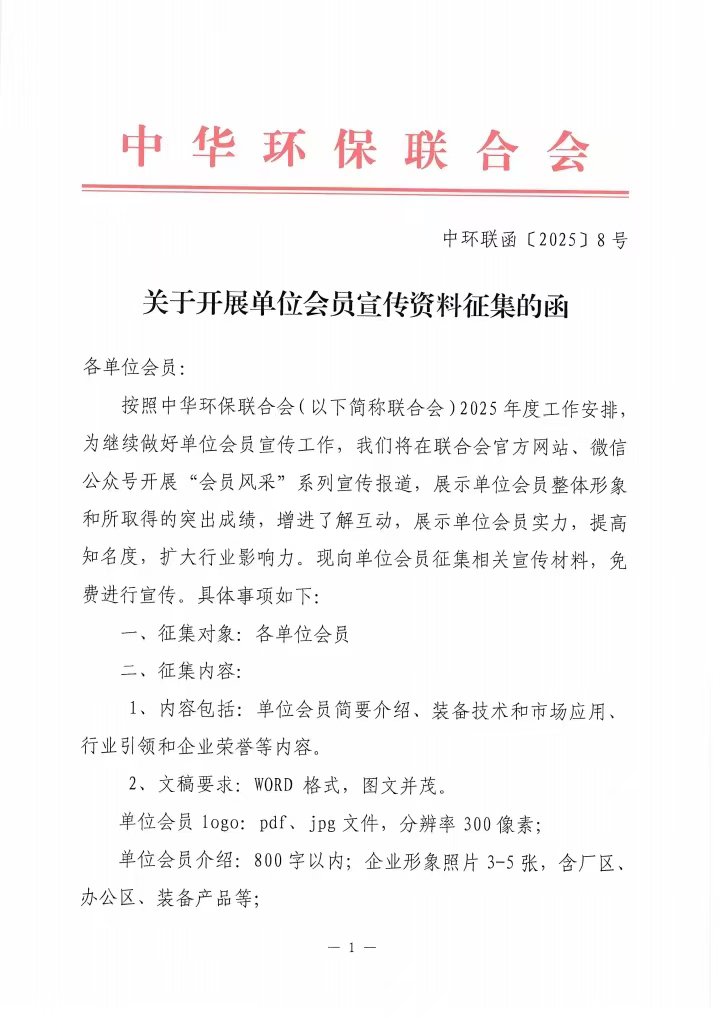 中华环保联合会关于开展单位会员宣传资料征集的函