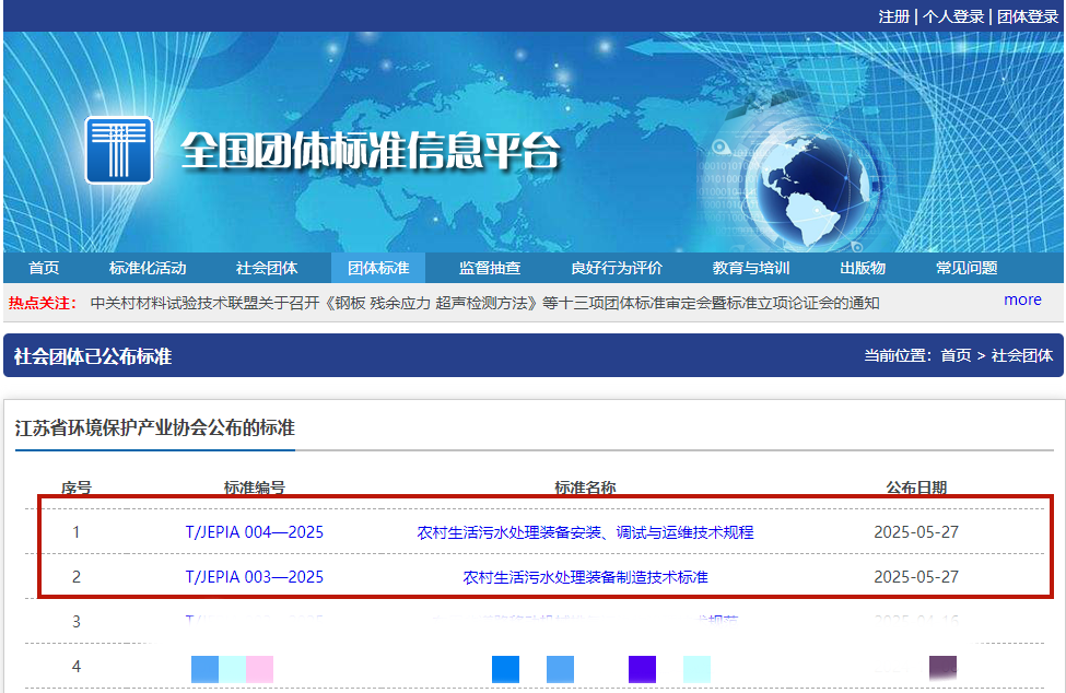 自5月29日起,由省环保集团产业公司所属江苏启德水务有限公司(以下简称“启德公司”)牵头,联合河海大学、南京师范大学起草的团体标准——《农村生活污水处理装备制造技术标准》和《农村生活污水处理装备安装、调试与运维技术规程》正式实施。这两项标准的发布,标志着启德公司在农村生活污水处理装备制造和建设领域的技术创新和行业引领方面取得重要突破,为江苏省乃至全国的农村生活污水治理提供了系统性的技术规范。