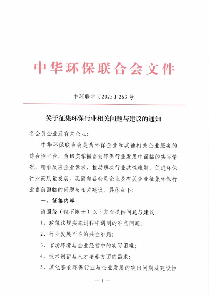 关于征集环保行业相关问题与建议的通知