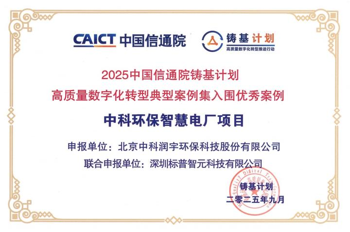 《高质量数字化转型典型案例集》。中科环保与深圳标普智元科技有限公司联合打造的