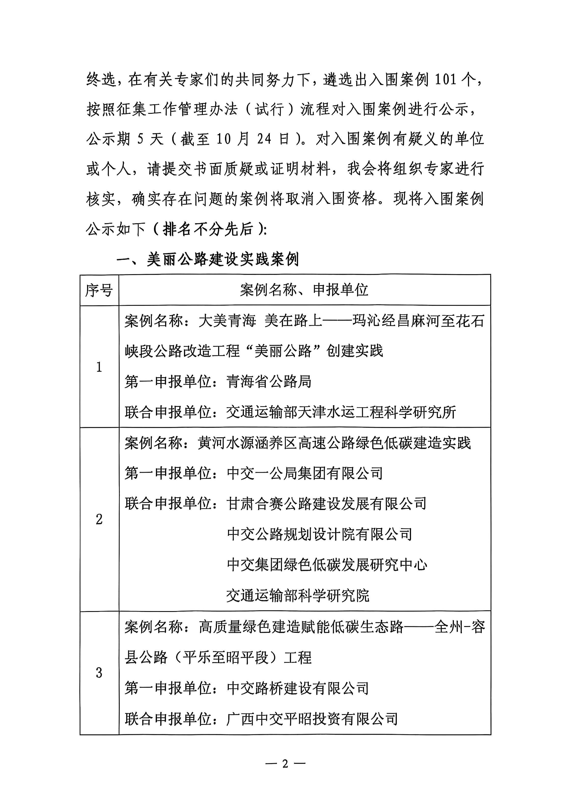 关于2025美丽交通建设实践案例入围结果的公示